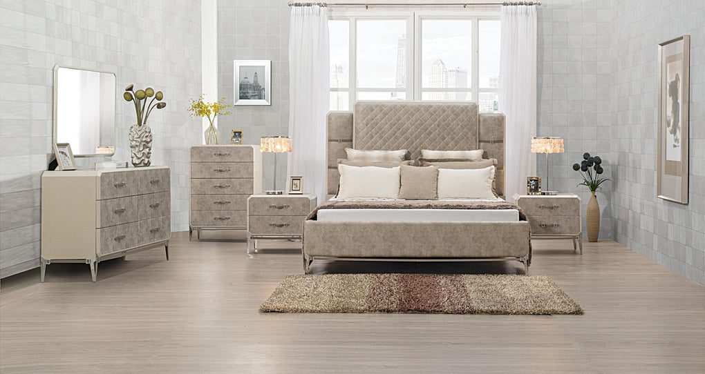 The Kordal bed provides a commanding presence in any room. Crafted with a transitional look that is an ideal addition to any bedroom. The Kordal rectangular mirror is crafted with matching vintage beige finish. This fashionable mirror will fuse with the surrounding Decor and transform a room from ordinary into something interesting and sophisticated.