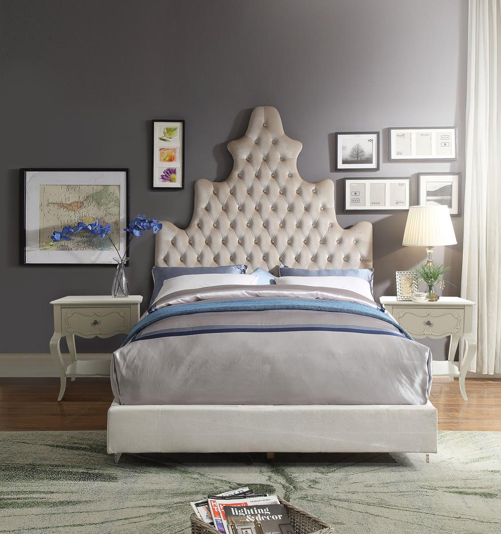 The collection honesty yourself in luxury dream with the platform bed. Glass buttons gives tufting and a headboard contemporary wing, this design gives room tranquility the exquisite gem and classic charm . Plastic legs, add a touch of dramatic contrast in the room.