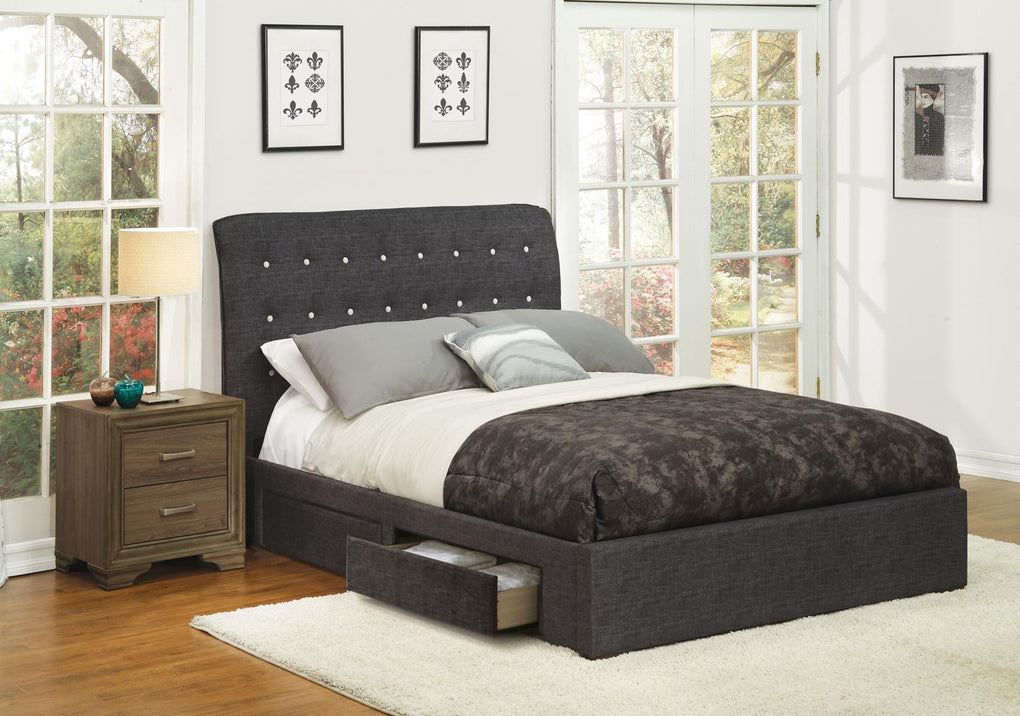 - Fully Padded Bed: Dark Gray Fabric (Button Tufted HB)