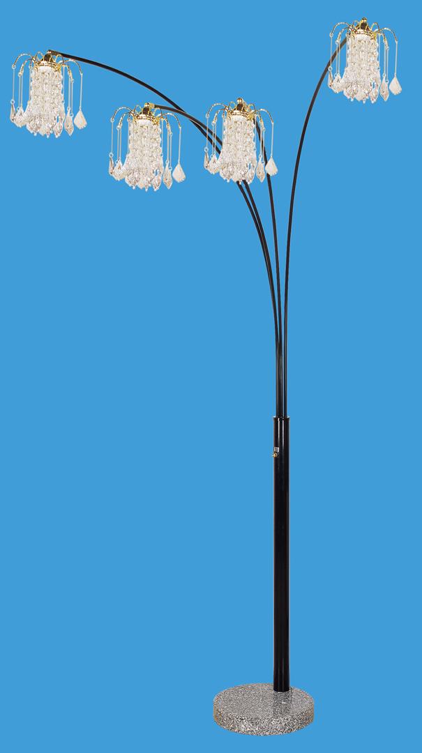 The ACME Arched Tree Floor lamp has a chandelier style with 4 black metal branches all branching from a marble base, each with its own chandelier style shade. Each of the accent shades are made from acrylic creating a classic style. This floor lamp is the perfect addition to any room of your home. Light Bulbs included.
