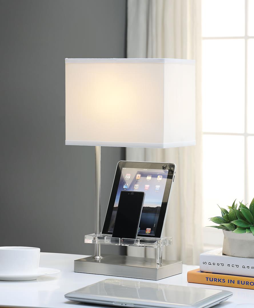 This versatile and modern Britt table lamp is the perfect addition to any room. This lamp features tablet and smart phone organization compartments, as well as USB Charging Dock. It also comes in a good size to fit on a desk or side table.