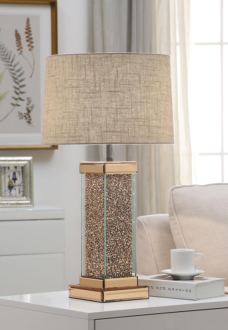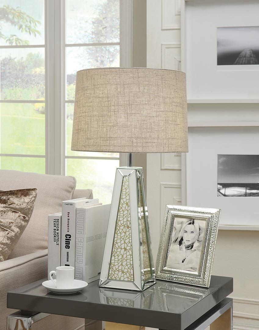 Gleaming and modish, this Britt table lamp will add a hint of luxury to any space. It is crafted in chrome and light brown fabric drum shade. Featuring in metal base, crystal bead, LED light bulb and 4-way rotary switch, your room will be glamour than ever.