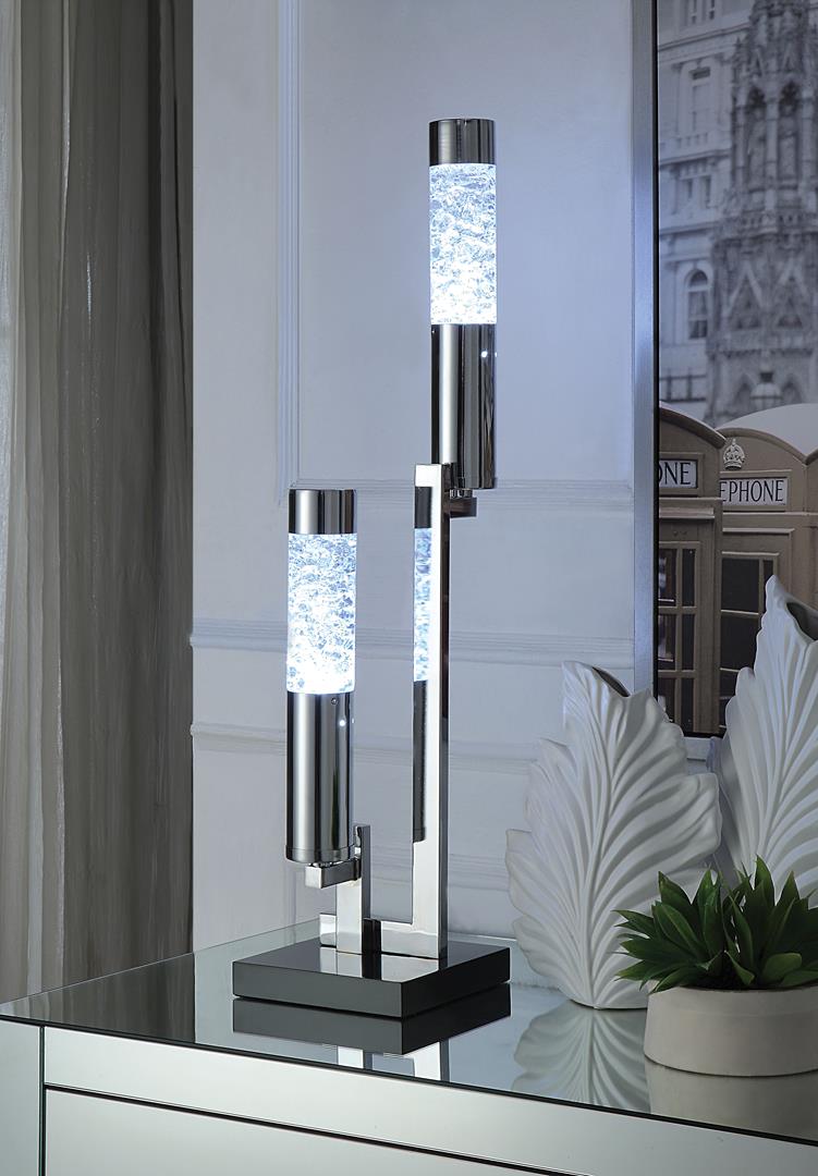Gleaming and modish, this Cici table lamp will add a hint of luxury to any space. It is crafted in chrome finish metal. Featuring metal base with double acrylic cylinder with G9 LED and rocker switch on power cable, the exceptional design will highlight your distinctive personality and bring an impressive sensation for your room.