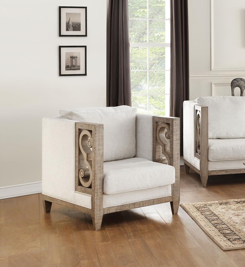 The Artesia chair is exclusively designed and filled with romantic spirit. This beautiful fabric chair features tapered wood legs and carved arms and trim. Decorated with oversized and scrolled motifs in a salvaged natural finish, each piece of this sophisticated living room set boasts of shelter arms, and matching oversized motifs. This chair will bring sophistication to your living room and will add elegance to any room Decor. This stunning collection will inspire a timeless look that will endure for years to come. This stunning collection will inspire a timeless look that will endure for years to come.