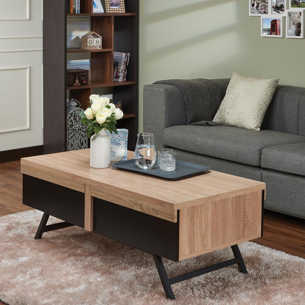 Attractive and unique, this Nuria occasional set will bring a chic update to your living room. Classic but stylish, it is constructed with light rustic natural veneer and black metal legs. Featuring two drawers, it offers abundant storage spaces for you to keep the area neat and clean. Perfect to complement with any sofa set, it will be a great addition to your room.