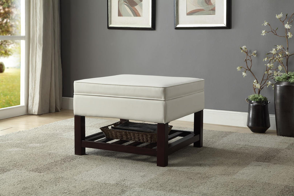 Keiko Cocktail Table w/Storage, Cream PU & Espresso