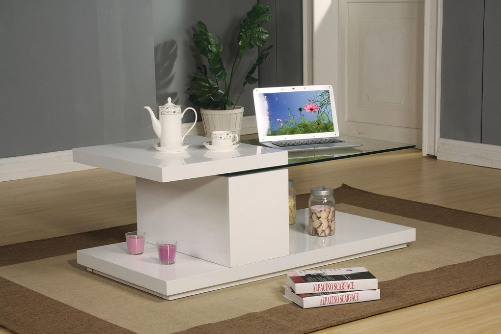 Marla Coffee Table w/Swivel Top, White & Clear Glass