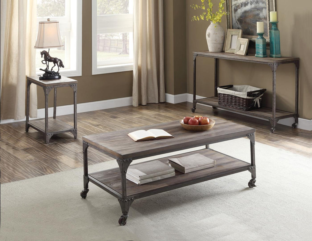 The Gorden occasional table collection create a industrial feel in your living room or seating area, which blends rustic oak finish wood with metal caster legs for a stylish look. The table also offers a lower shelf for extra storage under the table top. Simple yet unique styling, this coffee table will become the centerpieces of your living room.