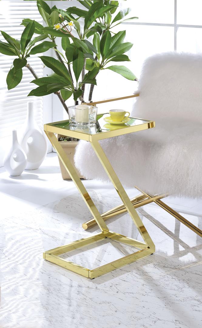 The Laina accent tables displays a dynamic design, it will be the most stylish additional accent piece for your home. Designed to be pulled up by sofa or chair, the "Z" shape painted metal base is nicely matched with a sleek surface of colored glass or mirror top. Pick the one that matches your room decor the best. Available in 4 different finishes.