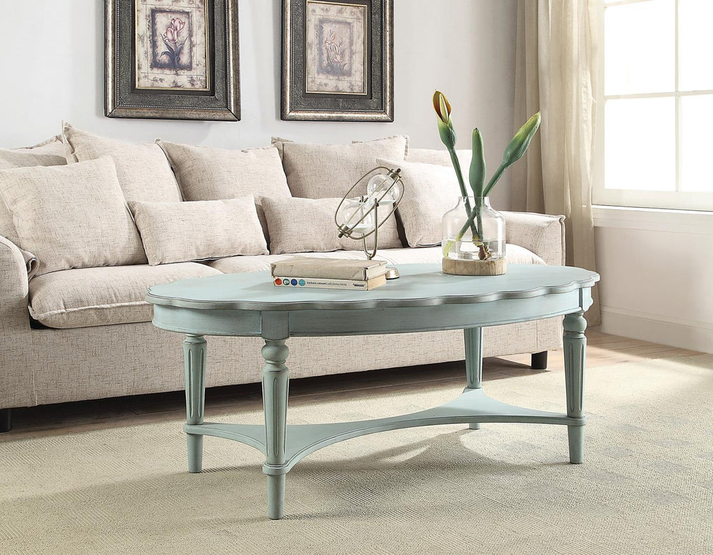 The French country-inspired Fordon occasional table is gracefully designed and made from quality materials. Scalloped round table top, turned legs and a bottom shelf, each piece is carefully crafted while superb functionality is kept in mind. This occasional collection is available in both of coffee and end table, with 3 inviting antique colors of green, slate and white.