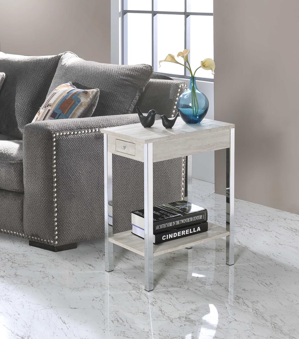 Functional and fashionable, our Philo side tables will sure to be the focal point in your living space. The drawer and bottom shelf give sufficient storage and display space. Two USB charging port and three-prong power outlet are located on the back of the table, offering easy power access. Available in two finishes, you could place it anywhere to match the décor.