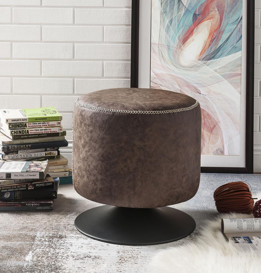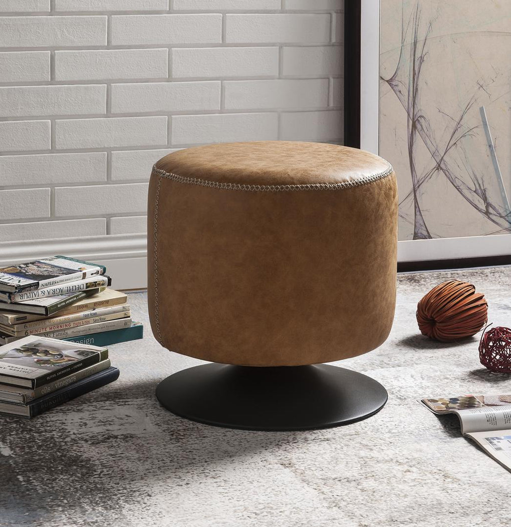 Enhance your home Decor with the elegant of this Ossian ottoman. Featuring wooden seat frame and metal round base, long-lasting durability is guaranteed. Upholstery with faux leather in vintage mocha or vintage caramel finish, it offers ultimate comfort. Equally suitable to be used as a footrest or a seat, this piece will be a great addition to any setting.