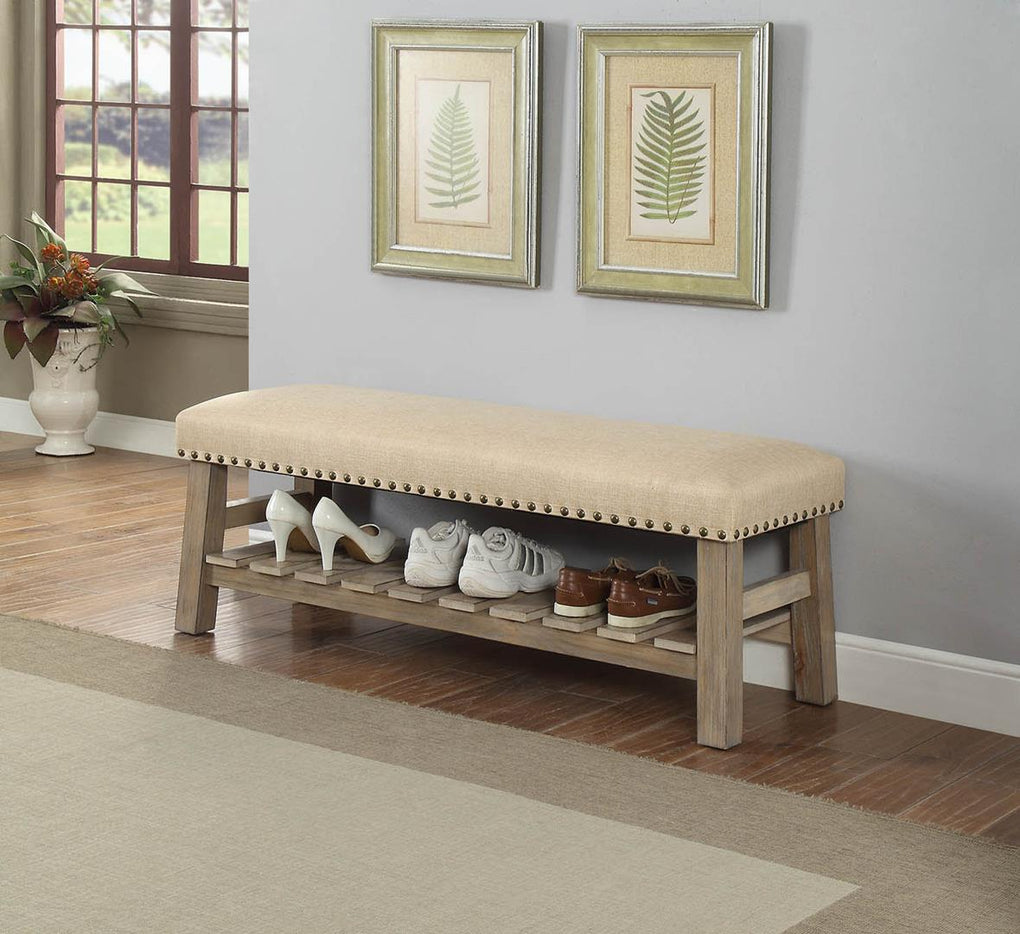 The Bigot storage bench offers functional storage and seating capabilities that you will grow to love. This antique white rectangular bench with fabric seat cushions has 1 bottom storage compartment which is perfect for hiding your shoes as you walk in. Place this bench in your hallway, laundry room or living room for a functional stylish storage solution.