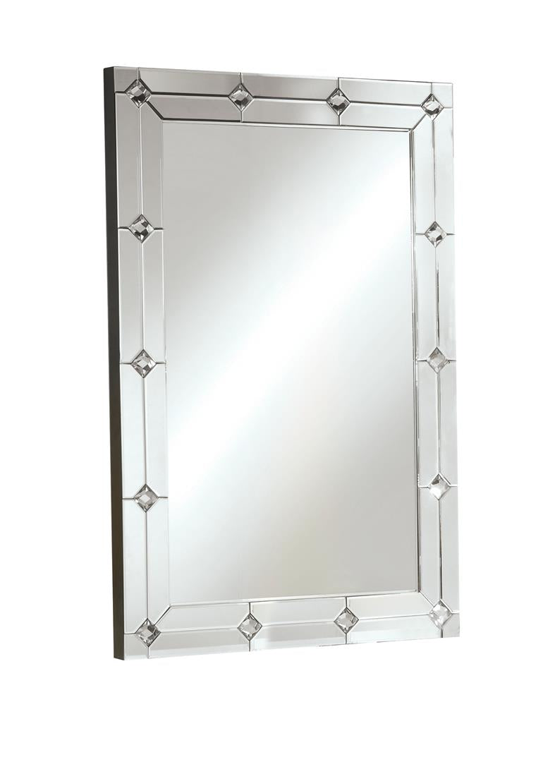 The Hessa wall mirror is sure to be focal point in any room. This beautiful wall mirror features a framed mirror with perfectly spaced diamond shaped mirror insets. This mirror is sure to stand out and brighten any room in your home.