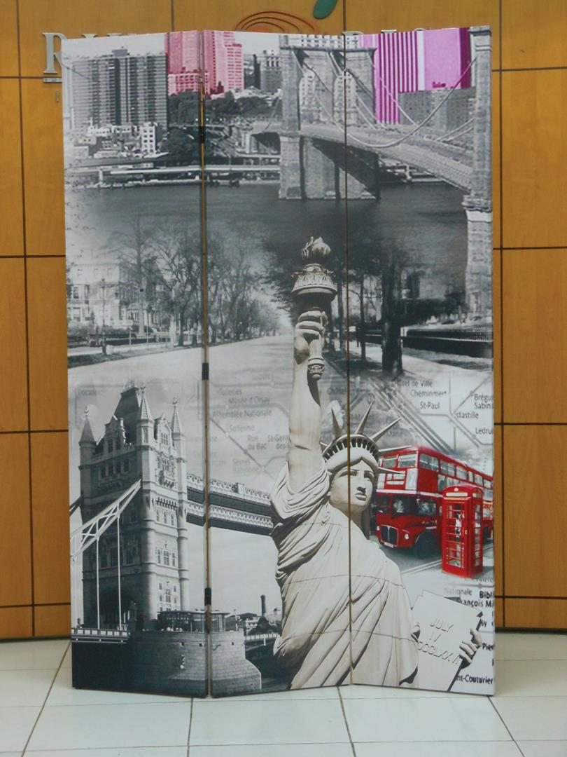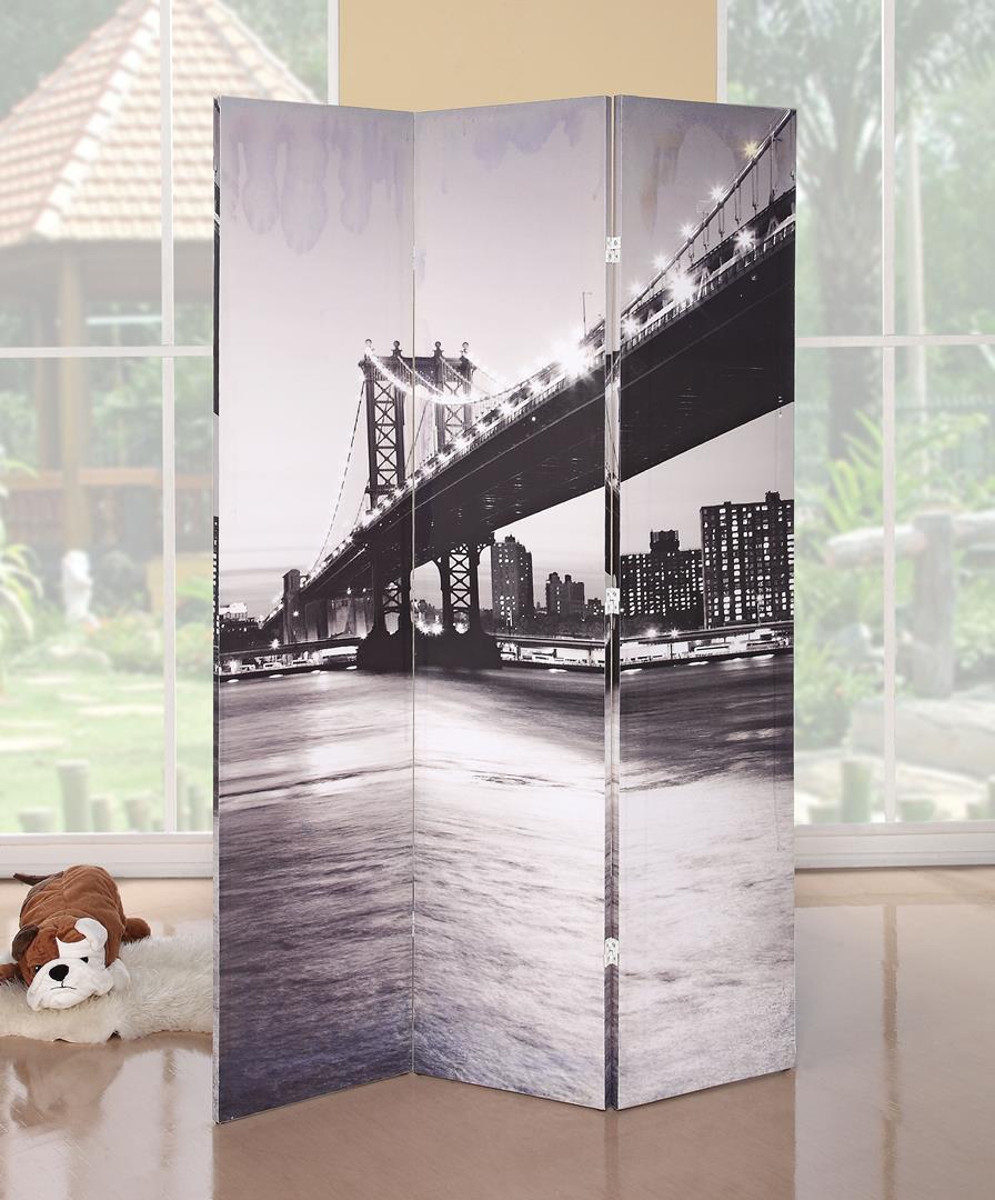 The Trudy Screen will transport yourself to a charming, quaint view by adding this whimsical floor screen to your home. Three wood panels are covered in canvas illustrating a calming scene from a quiet town. Perfect for dividing up a room or just adding a fun element to your kitchen or living space. Assembled