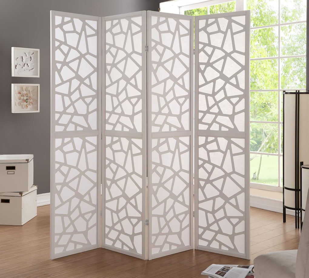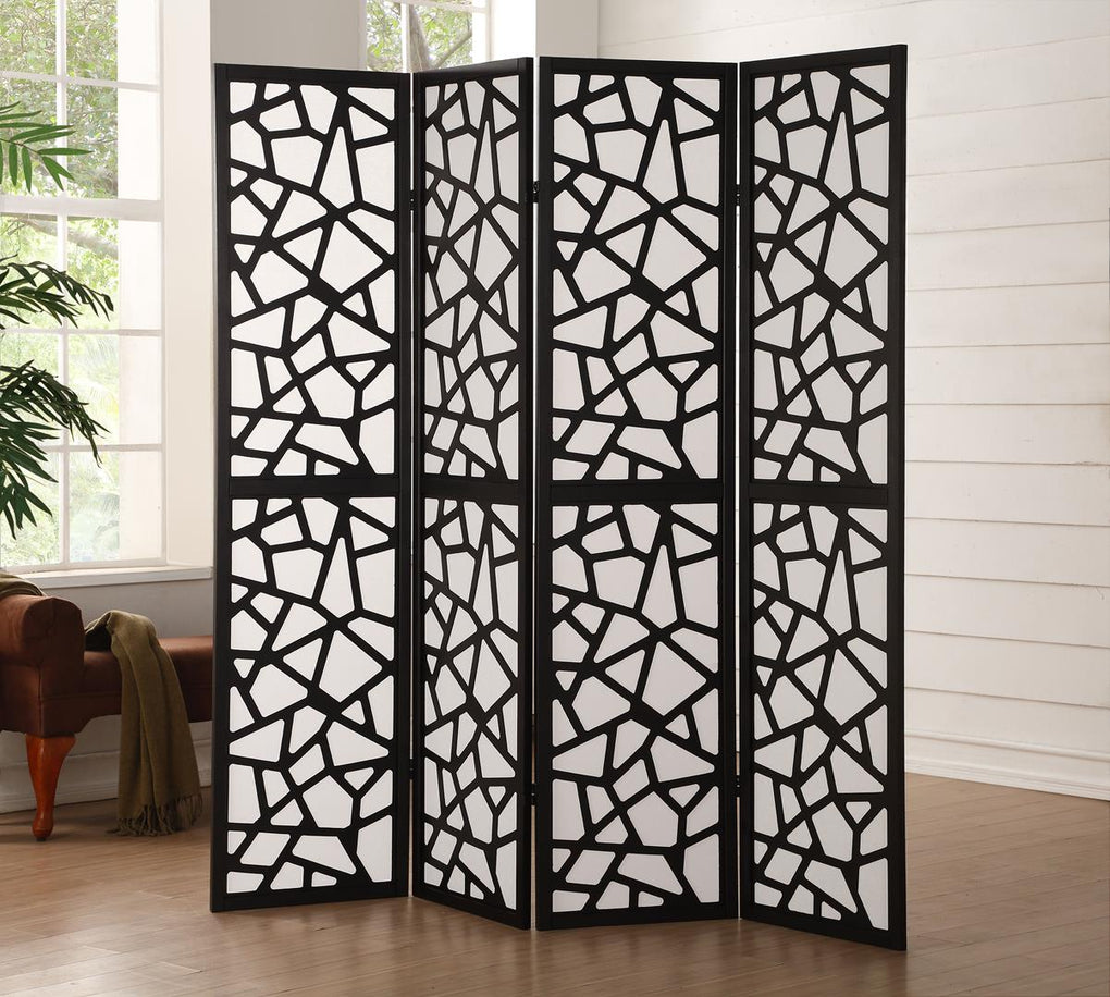 With its triangular grid pattern, the Aerona 4-Panel Screen Room Divider is perfect for hiding unsightly areas, fireplaces, kids' play areas or simply for adding a new design element to your space. It will be a great addition for providing privacy and decoration. No assembly is needed. Available in Black & White