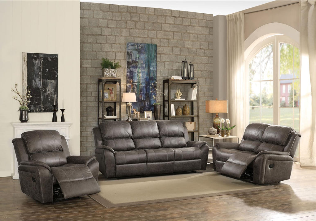 The Barnaby motion loveseat combines comfort with a rich design. This durable and comfortable loveseat collection features tight back and seat cushion with pocket spring construction and pillow top arms. The motion reclining function controlled by an external latch handle will provide additional comfort for you and your companies. With gray polished microfiber, this loveseat will give your living room a sleek and contemporary look. Some Assembly Required.