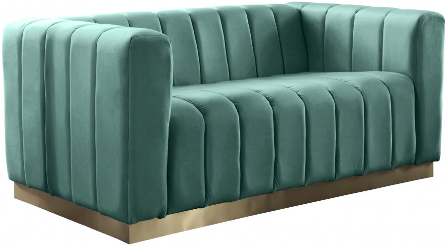 Elegant and eye-catching, the stunning black velvet Marlon Loveseat from Meridian Furniture is the perfect addition to any space.