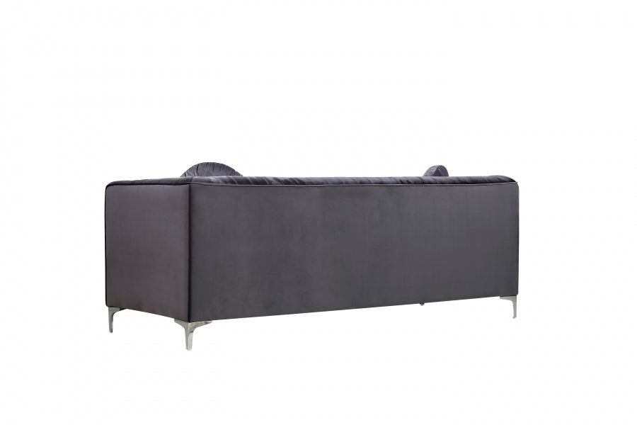 The Isabelle Collection by Meridian Furniture. Features beautifully designed velvet upholstery with custom chrome legs. This collection is guaranteed to be the highlight of any home. Throw pillows included.