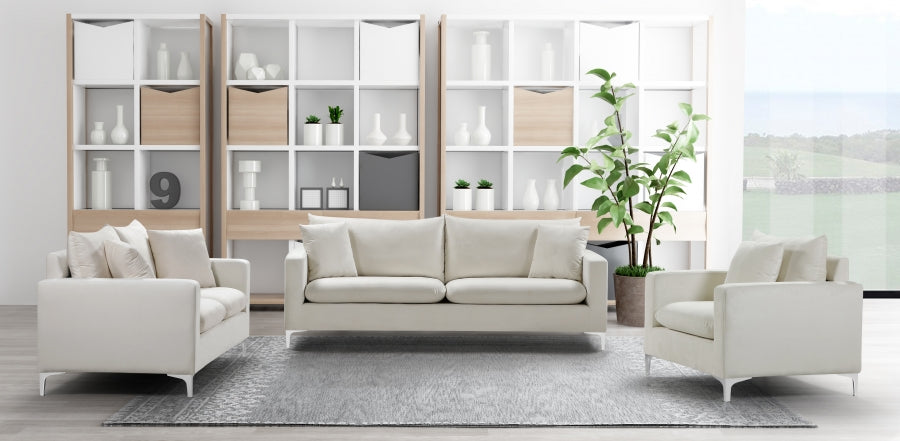 Curl up with a good book from the welcoming confines of this Naomi Black Velvet Loveseat. The color of this loveseat adds a bold touch to your decor and shakes up otherwise neutral color schemes. Plush velvet material feels cozy and comfortable against your skin, while deep seat cushions provide lots of room for you to stretch your legs. This loveseat comes with both gold and chrome legs, so you can customize its look to meet your decor plans. Pillows are included for added homey warmth and comfort.