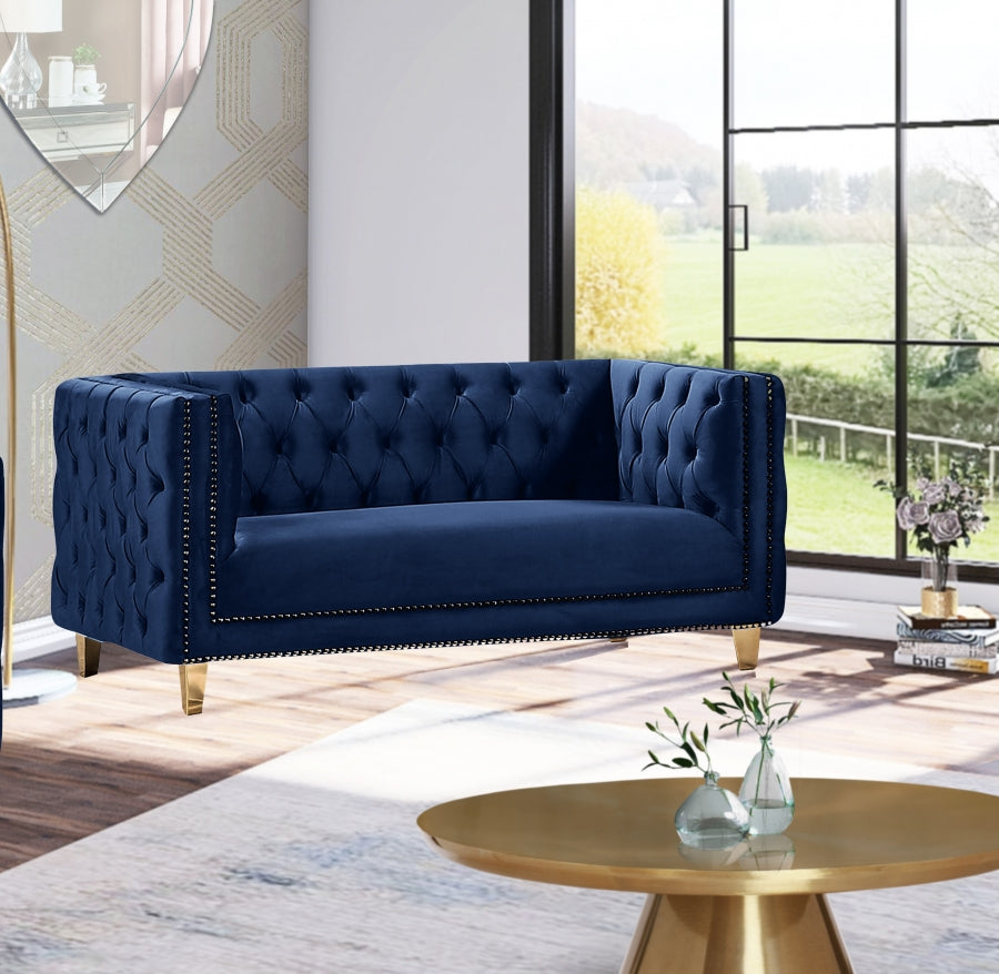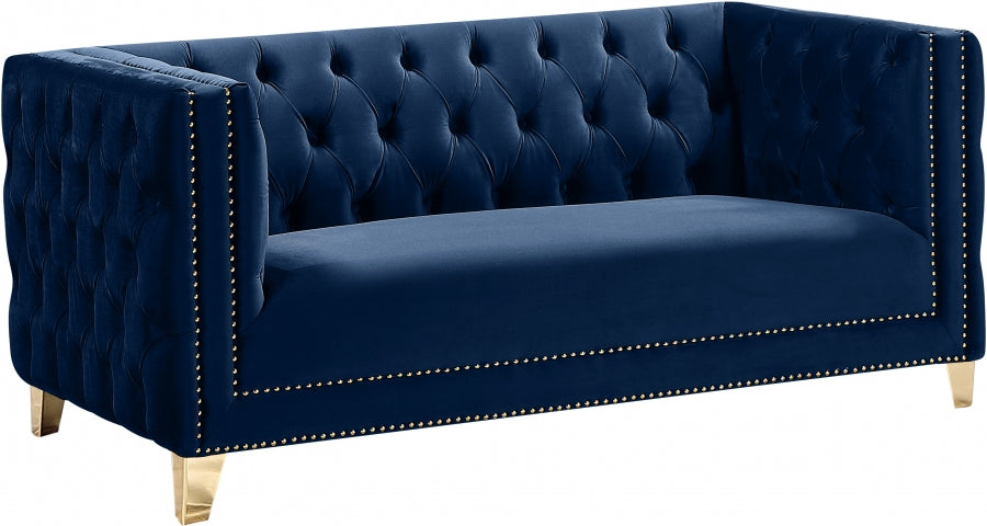 Elegant and eye-catching, the stunning black velvet Michelle Loveseat from Meridian Furniture is the perfect addition to any space.