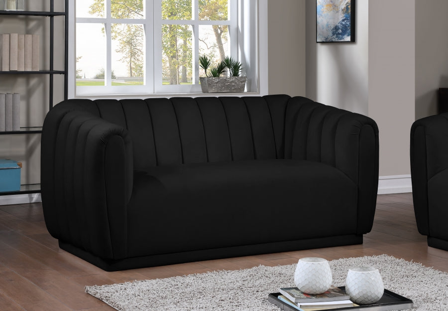 Elegant and eye-catching, the stunning black velvet Dixie Loveseat from Meridian Furniture is the perfect addition to any space.