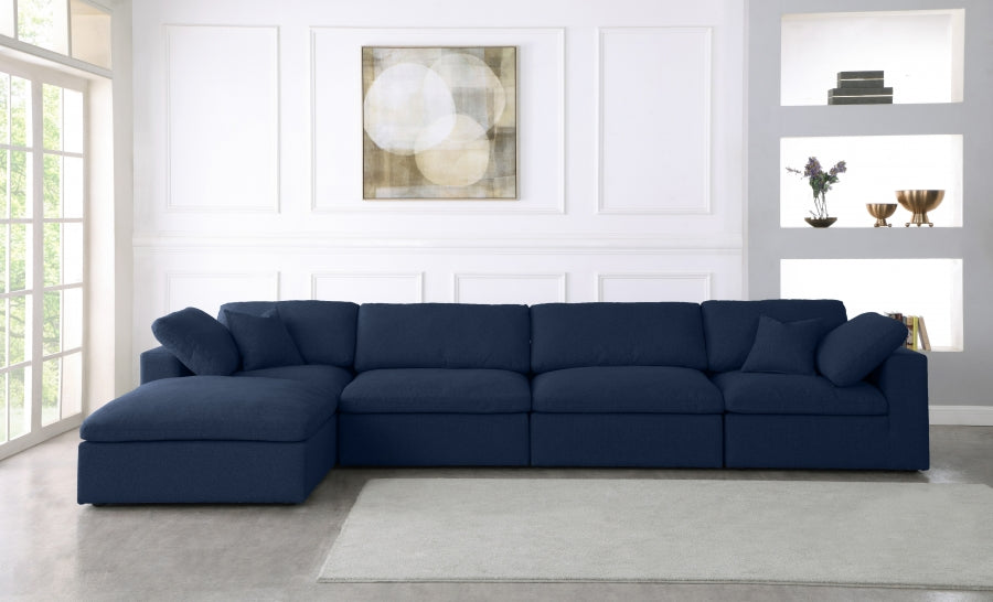 Elegant and eye-catching, the stunning navy linen fabric Serene Deluxe Cloud Modular Sectional from Meridian Furniture is the perfect addition to any space.