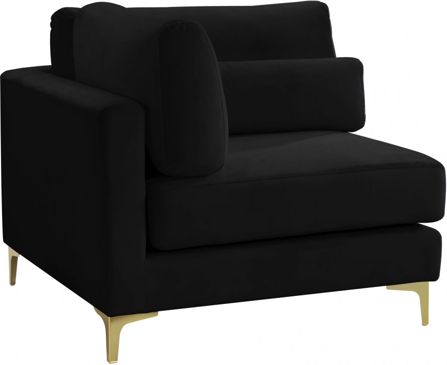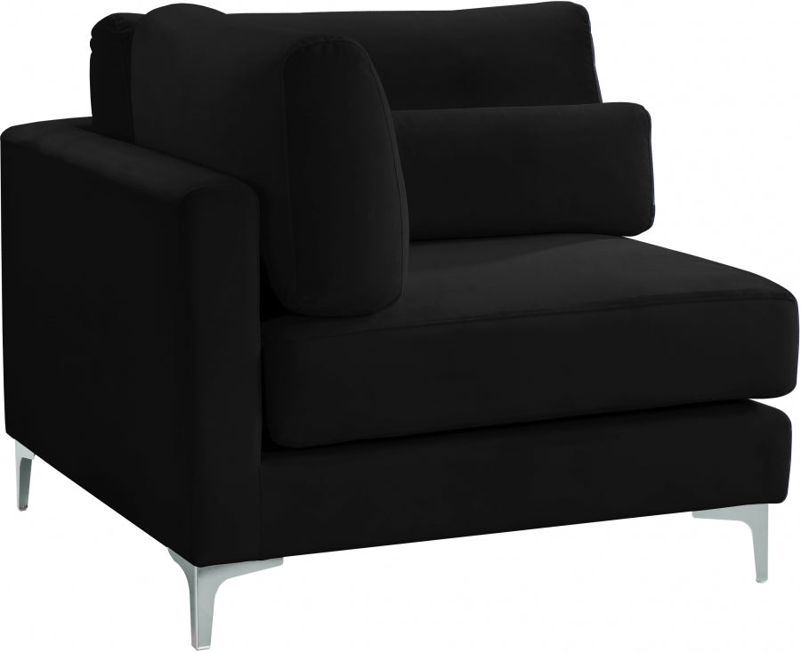 Elegant and eye-catching, the stunning black velvet Julia Modular Corner Chair from Meridian Furniture is the perfect addition to any space.