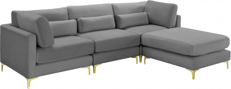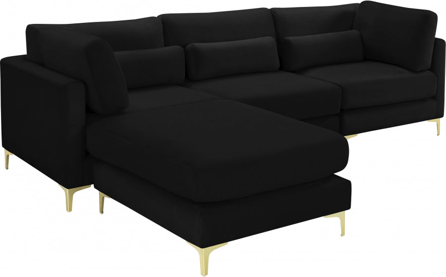 Elegant and eye-catching, the stunning black velvet Julia Modular Sectional (4 Boxes) from Meridian Furniture is the perfect addition to any space.