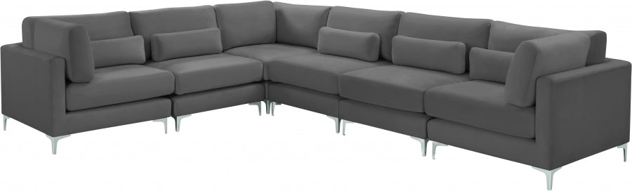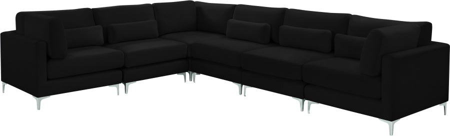 Elegant and eye-catching, the stunning black velvet Julia Modular Sectional (6 Boxes) from Meridian Furniture is the perfect addition to any space.