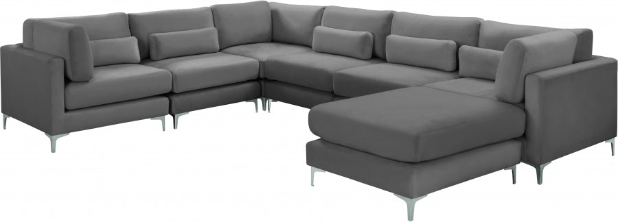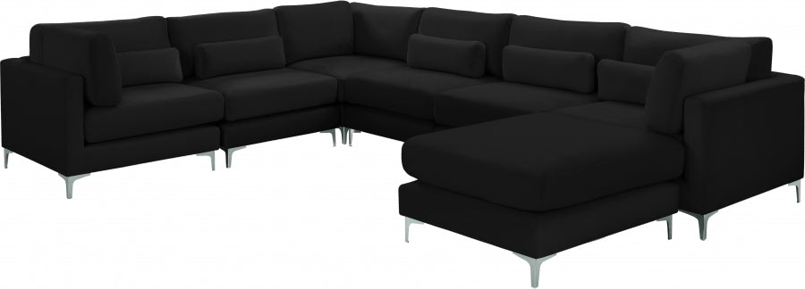 Elegant and eye-catching, the stunning black velvet Julia Modular Sectional (7 Boxes) from Meridian Furniture is the perfect addition to any space.