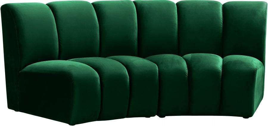 Elegant and eye-catching, the stunning black velvet Infinity 2pc. Modular Sectional from Meridian Furniture is the perfect addition to any space.
