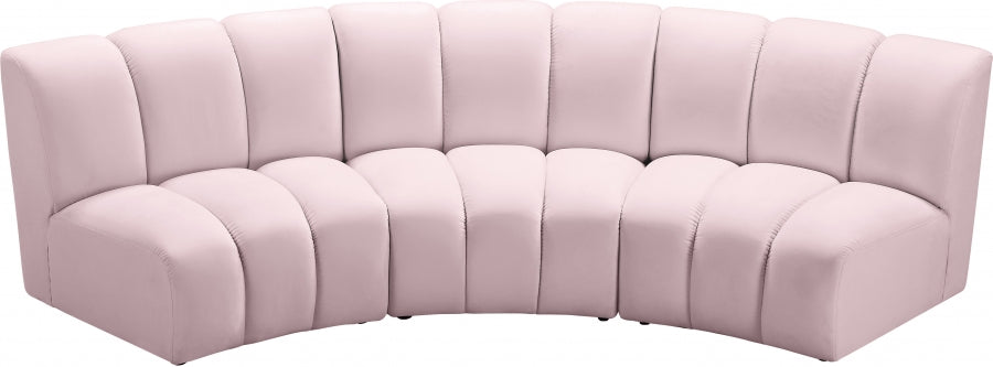Elegant and eye-catching, the stunning black velvet Infinity 3pc. Modular Sectional from Meridian Furniture is the perfect addition to any space.