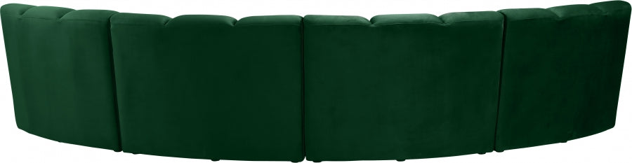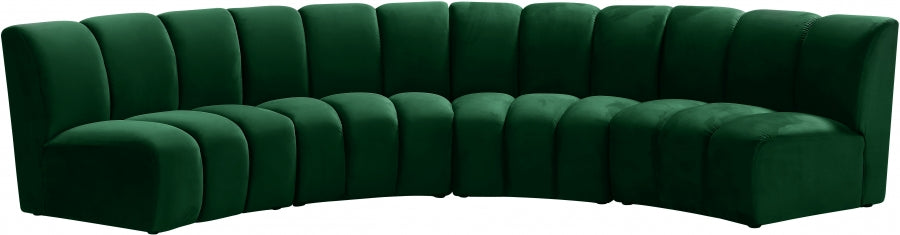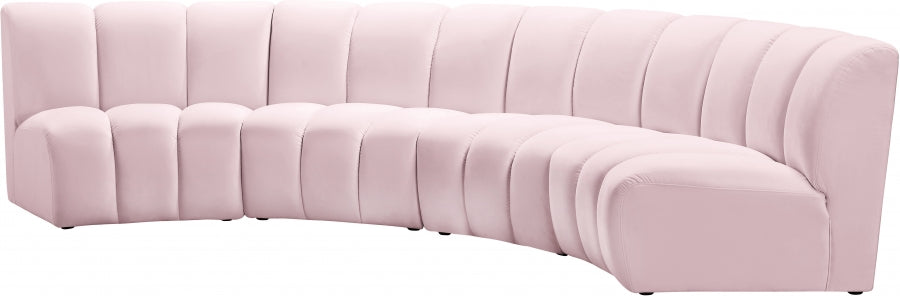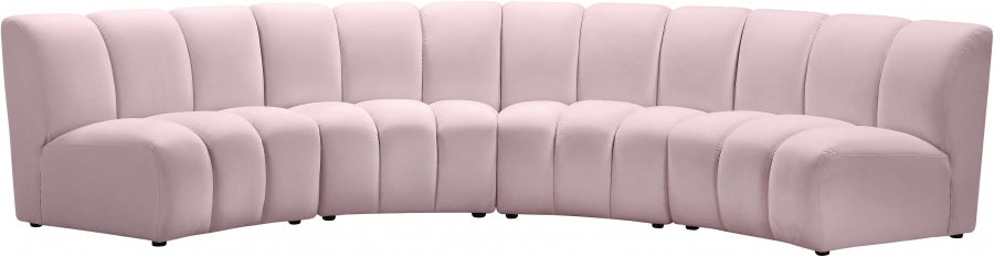 Elegant and eye-catching, the stunning black velvet Infinity 4pc. Modular Sectional from Meridian Furniture is the perfect addition to any space.