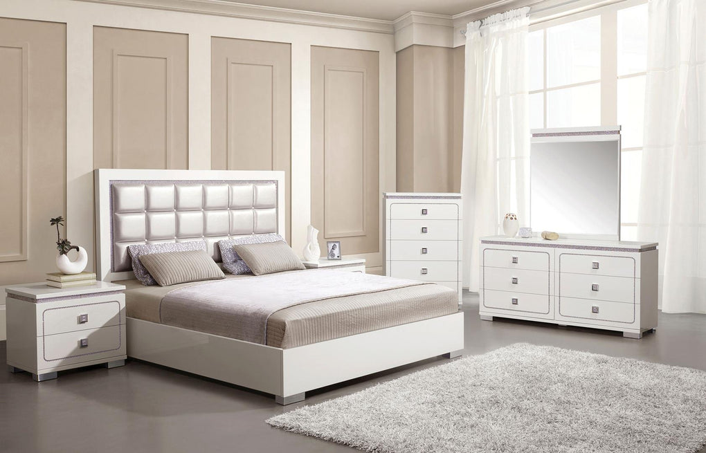- Panel Bed: Button Tufted HB with Crystal like Inlay