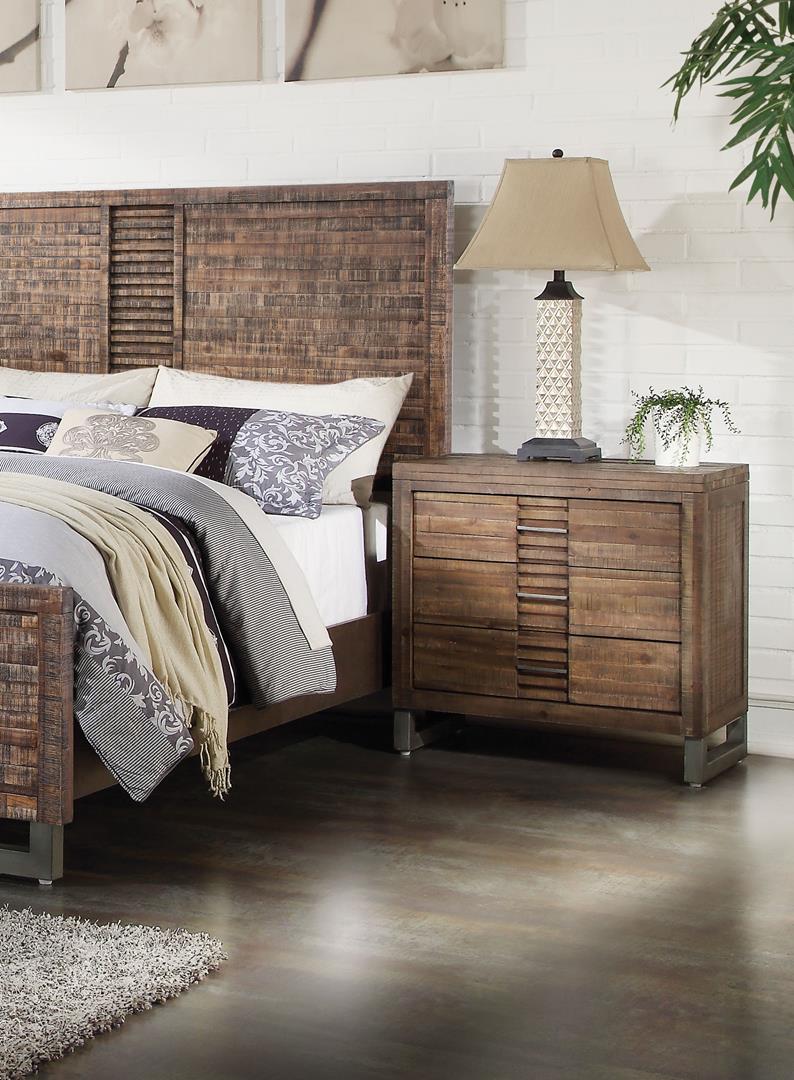 The Andria collection was created to address a trending style in today's market while adding some transitional feel by bowing the inset drawers. Use of the slats in the center of the drawer and hardware to match the slats creates a uniform design element. The metal legs modernize the collection throughout.