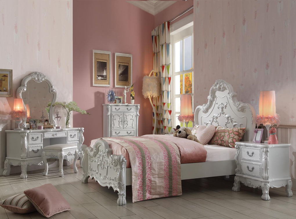 The Dresden nightstand is a new rendition to a classic style, finished in antique white. The antiqued look is further highlighted with hand applied burnish. This nightstand features two Felt-Lined drawers with detailed French front and back. Keep this nightstand close for easy access to your necessities and add a bit of class to any bedroom. Some Assembly Required.