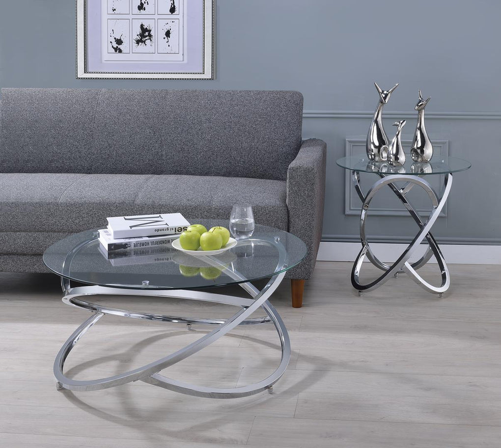 Present your unique style with this Marlon round end table. Constructed with chrome, this magnificent coffee table is inspired by mid-century contemporary style. The clear tempered glass provides strong support for holding food and beverage. Furthermore, metal "X" Shape-Ring Base support design will toughen the support ability and make it a charming centerpiece that represents your exceptional sensation.