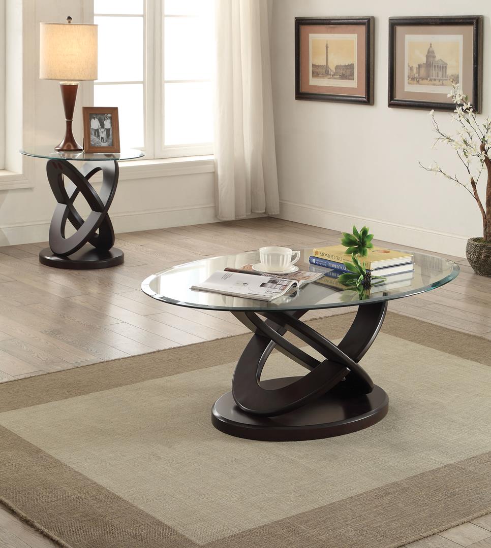 Gable End Table, Espresso & Clear Glass