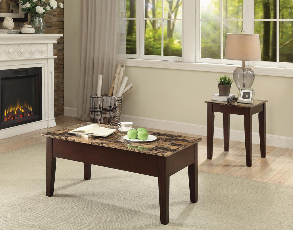 Dusty II End Table, Light Brown Faux Marble & Cherry