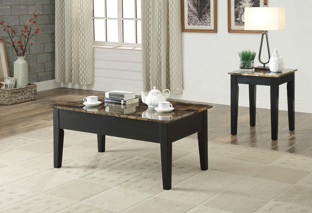 Dusty II End Table, Dark Brown Faux Marble & Black