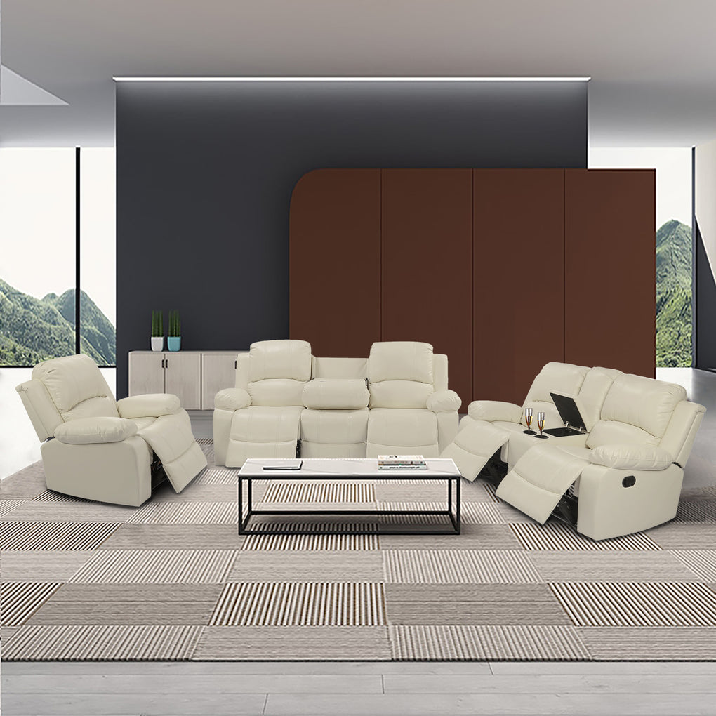 3PCS MANUAL RECLINER LIVING ROOM SET BEIGE COLOR