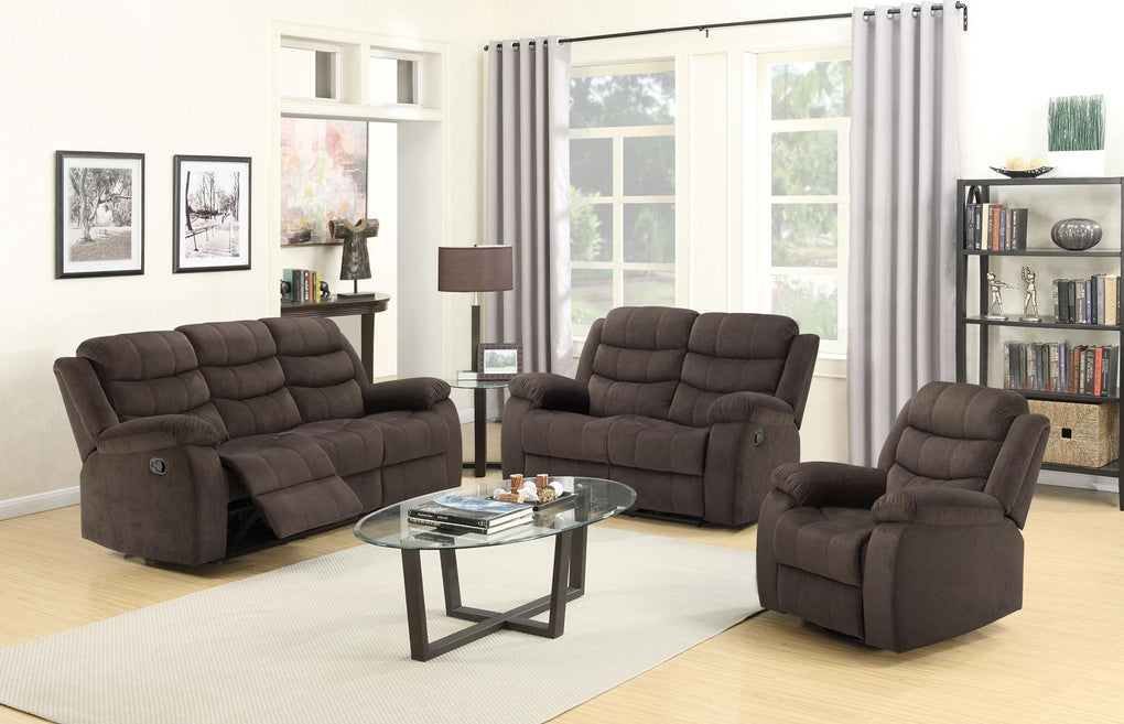 Enjoy every inch of comfort in the Cuinn motion loveseat. Boasting a luxurious dark olive velvet that will create a warm look in your home. This reclining loveseats soft cushions will surround you providing comfort and relaxation in all the right spots. Simply pull the tab to recline. You will love the casual elegance which emerges from the horizontal tufting that highlights the extra cushioning found on the armrests, headrests, and backs. This stunning collection will truly inspire a look that will endure for years to come.