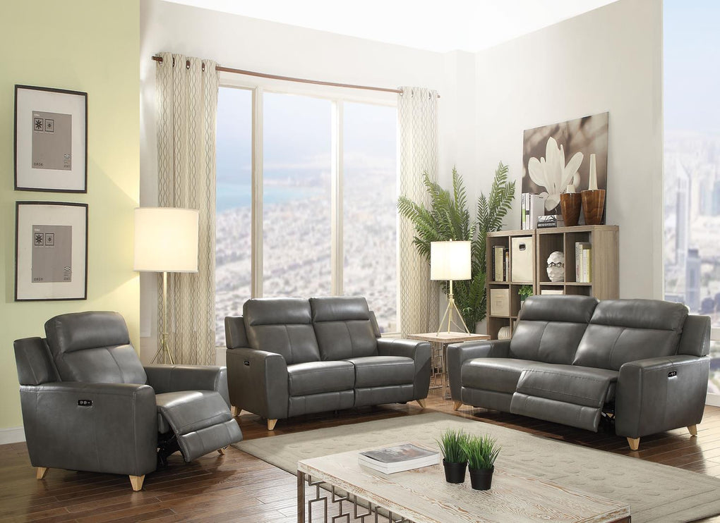 Cayden Loveseat (Power Motion), Gray Leather-Aire Match