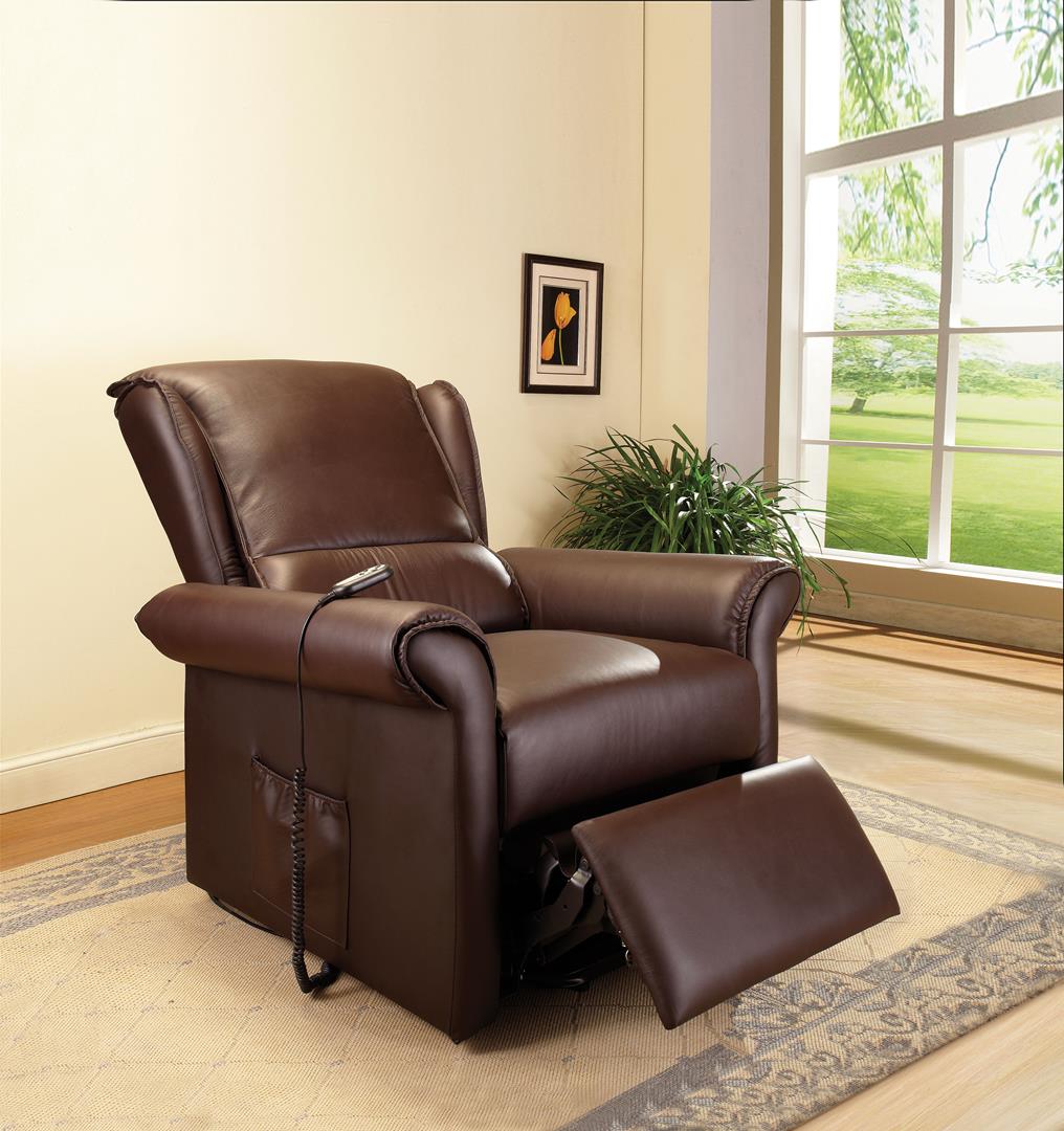Emari Recliner w/Power Lift & Massage, Dark Brown PU