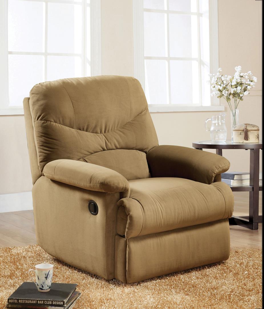 The lovely Arcadia Glider recliner offers comfort, style and value for any home. A smooth microfiber seat cushion provides relaxation from seat to toe with an easy to reach external handle for operating the reclining mechanism.