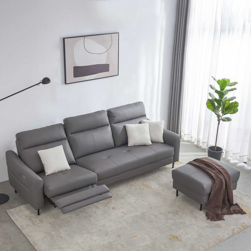 Real Leather Reclining Sofa with Power Headrest, Footrest and USB port—Dark Grey