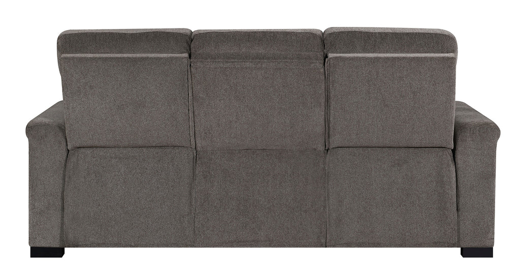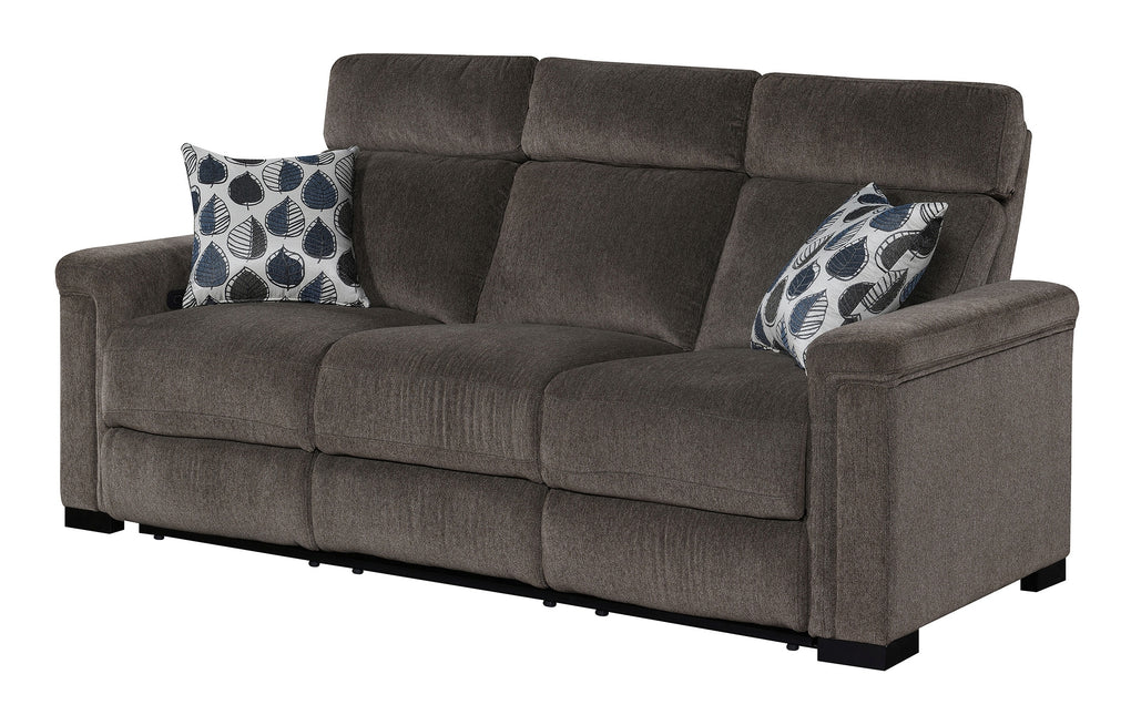 Power Reclining sofa with power headrest, dropdown table, dimmable reading light. power outlets, stainless steel cupholder, hidden controls w/USB , and made up in a microdenier chenille with a pair of accent pillows.Power Reclining lay flat chaise with power headrest, hidden controls w/USB , and made up in a microdenier chenille with an accent pillows.
