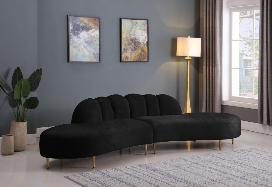 Elegant and eye-catching, the stunning black velvet Divine 2pc. Sectional from Meridian Furniture is the perfect addition to any space.