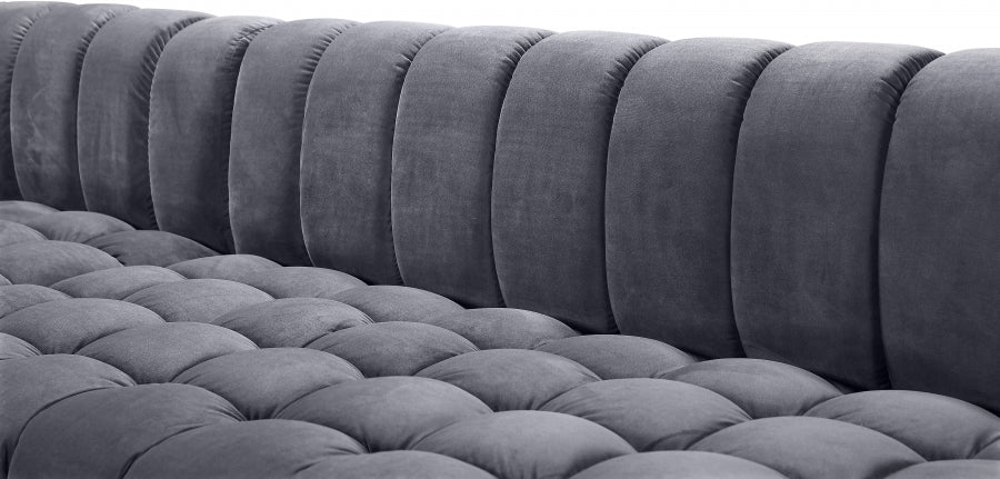 Elegant and eye-catching, the stunning black velvet Gwen 3pc. Sectional (3 Boxes) from Meridian Furniture is the perfect addition to any space.